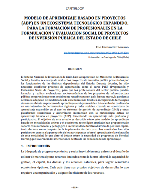 Modelo de aprendizaje basado en proyectos (ABP) en un ecosistema tecnológico expandido, para la formación de profesionales en la formulación y evaluación social de proyectos de inversión pública del Estado de Chile Elio Fernández Serrano Ver publicación → A 50 años del golpe de Estado en Chile: 50 años de historia(s) mapuche Pedro Canales Tapia Ver publicación → 22. « Cuando estábamos presos » Aproximación a una historia de las agrupaciones de familiares de presos y presas políticas en la transición chilena (1988-1994) Nicolás Acevedo Ver publicación →